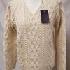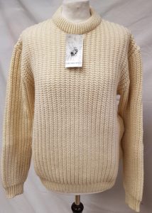Classic Sweater , extra fine knitted made in UK using only 100% pure new wool extra soft grade, colour Ecru, regular fitting garment, ribbed arran knit, heavy gauge