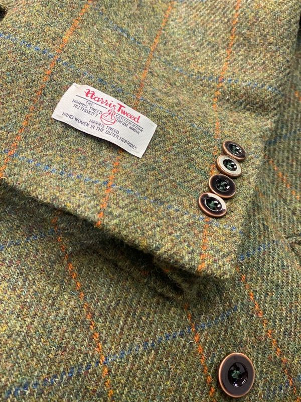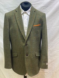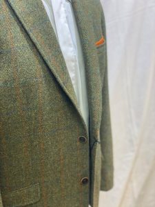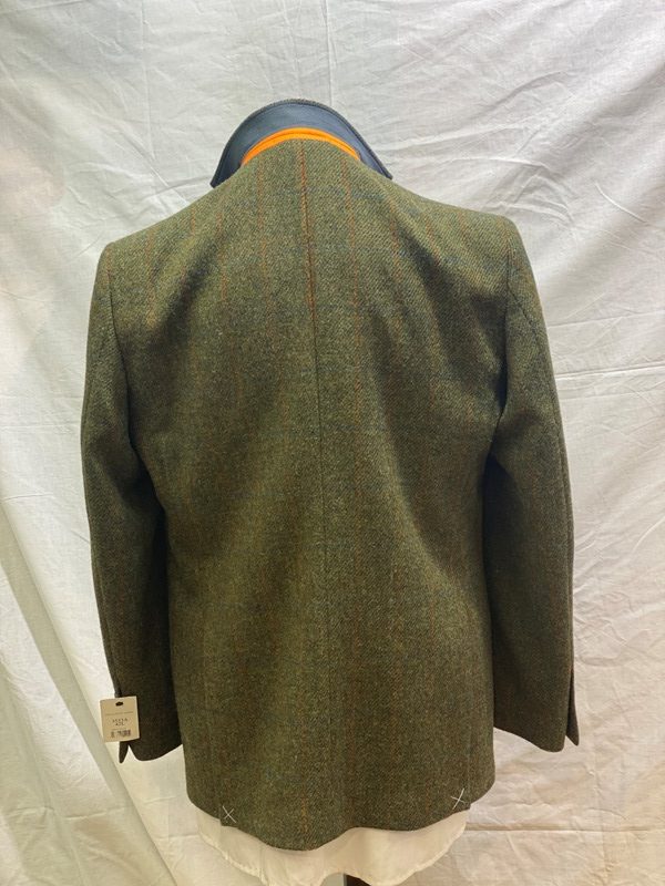 Classic Authentic Harris Tweed Jacket , hand woven in the island of Harris the outer herbides, 3 pocket jacket with 2 inside pockets fully lined with classic counrty green with orange check, this is a regular fitting jacket,