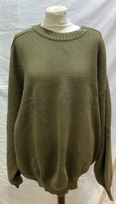 Woolyback , Quality british wool knitwear heavy 4 gauge Crew neck sweater regular/loose fitting garment 100% pure new wool colour sage green, 18 oz wieght per kilo