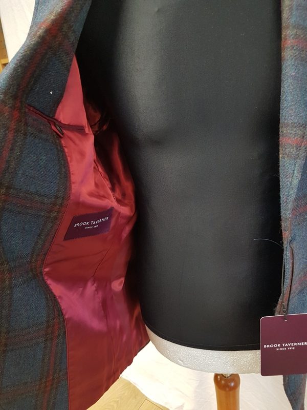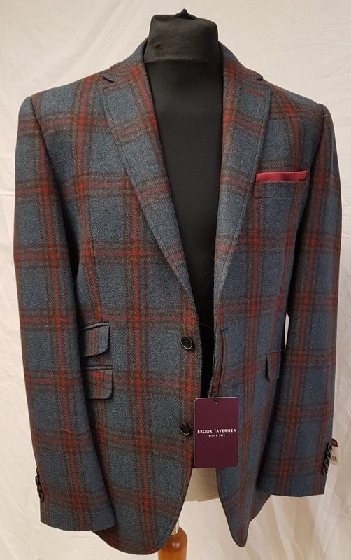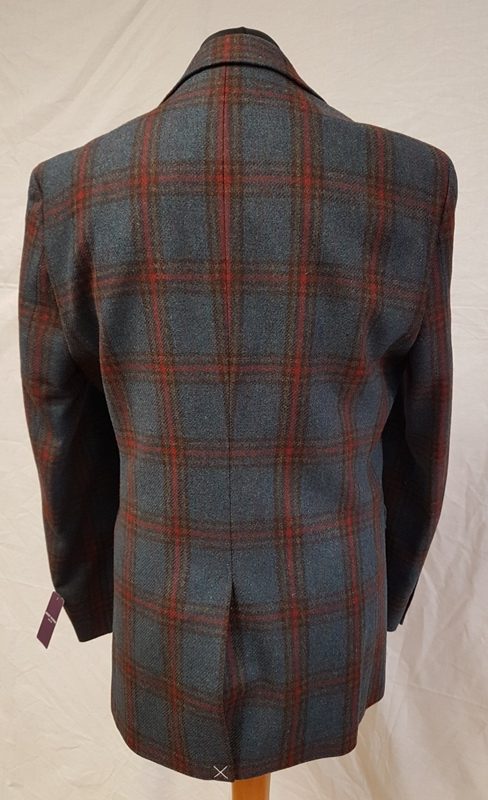 Heavy Tweed Jacket , 100% wool made in UK , fully lined with burgandy linning colour denim tweed with red/green square checks regular fitting jacket,